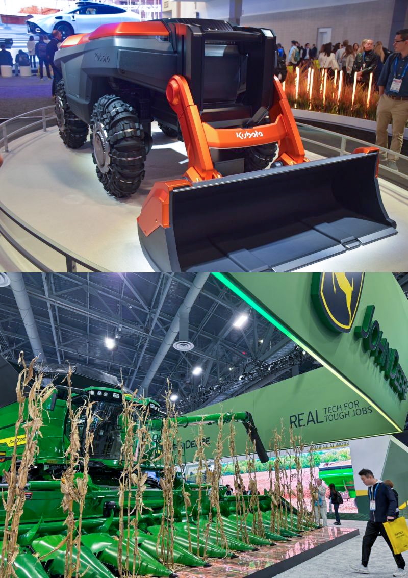 一方、モビリティブースで存在感を発揮していたのは、農業用モビリティです。巨大な農業用モビリティは、ヒーロー感のある存在として、思わずワクワクする展示が目立っていました。”食”は必要不可欠な領域、ビジネスチャンスもたくさんある中で、巨大な農業用モビリティの存在感は光っておりました。テクノロジーが進化しても、人間が生きていくうえで必要な「食べ物」は有限です。だからこそ、人口が減っても、過酷な天候や地形のエリアでも活躍できる農業用モビリティの存在は、まさに希望の象徴でした。効率的かつ力強く開拓し、資源を生み出してくれるその姿は、「食」という不可欠な領域でのビジネスチャンスを感じさせるものでした。