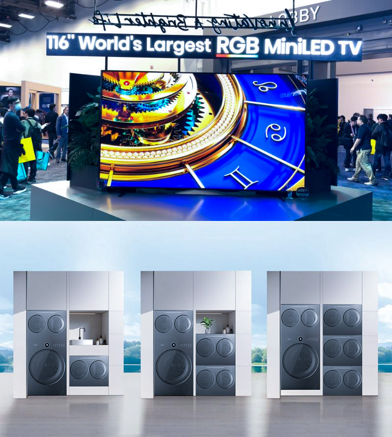 Hisenseは中国の高画質かつ高コスパのTVモニターが有名な総合家電メーカーですが、miniLED、MicroLEDなどの通常のLEDの課題であるピッチの荒さを解消する先進的なディスプレイに加え、洗濯機、冷蔵庫、空調、調理器具などにもAIを搭載し、AIエージェントに紐づけられたスマートホーム技術を提案していました。例えば洗濯機。単に衣類を洗う機械ではなく、生活リズムや汚れのレベルなどを認識して、最適な洗濯サイクルの提案やメニューの提案などをしてくれるという製品で、イノベーションアワード(※)を受賞しています。